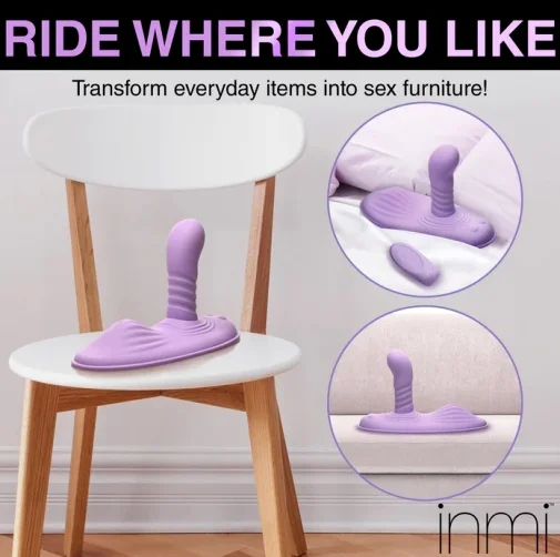 Inmi 抽插式震動型坐墊,一體化設計解放雙手,內置強勁馬達與多段遙控,紫色矽膠柔軟親膚,為您帶來沉浸式私密愉悅體驗。