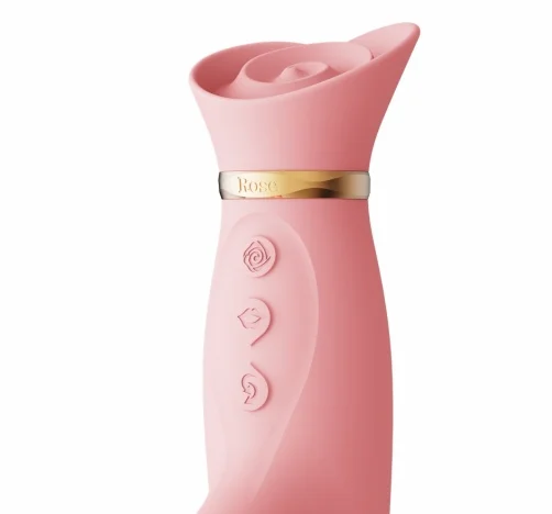 Zalo Rose 推撞震動棒 – 草莓粉紅色,專為亞洲女性設計,結合推撞震動與玫瑰花瓣吸吮,帶來雙重感官刺激。IPX7防水,矽膠親膚材質,探索愉悅新境界。